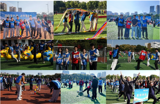 本次趣味运动会设置了“足球小将”“毽球传递”“旱地龙舟”“滚滚红尘”“合作共赢”“大力投篮”和“50米迎面接力”多个趣味项目。赛场上,导师与研究生并肩作战,在“毽球传递”项目中,张鑫老师耐心指导学生调整传球节奏,师生间眼神交流默契十足,最终带领团队斩获第四名;“旱地龙舟”项目里,罗婷老师主动分享技巧,与学生共同克服挑战,成功拿下第四名。“合作共赢”项目里,尹敏老师带领学生团结奋进,最终获得第六名的好成绩。这些互动不仅让师生在比赛中享受乐趣、增强体质,更搭建起导学沟通的桥梁,充分展现了学院良好的竞技水平和团队合作精神,为和谐导学关系注入了新活力。