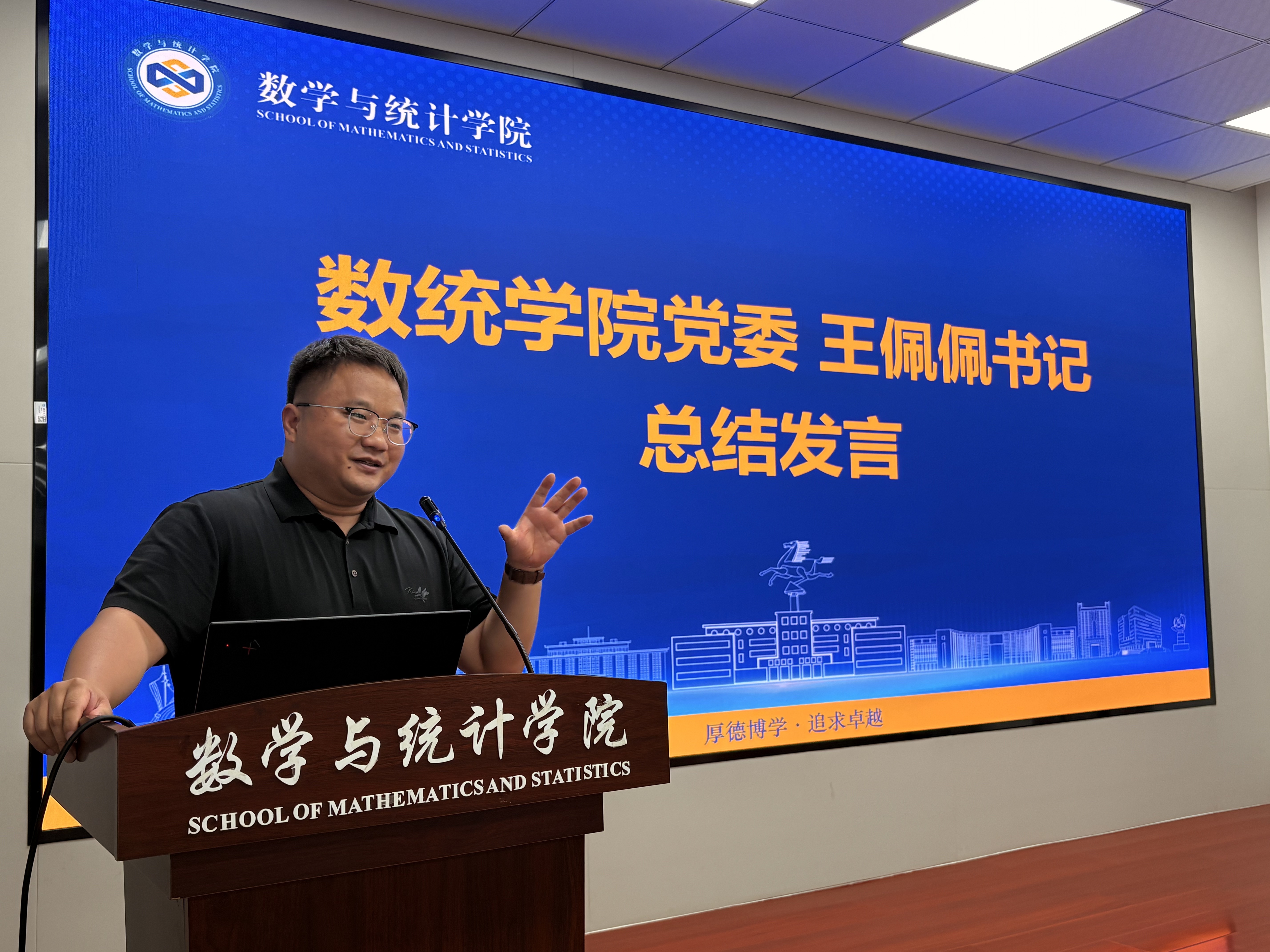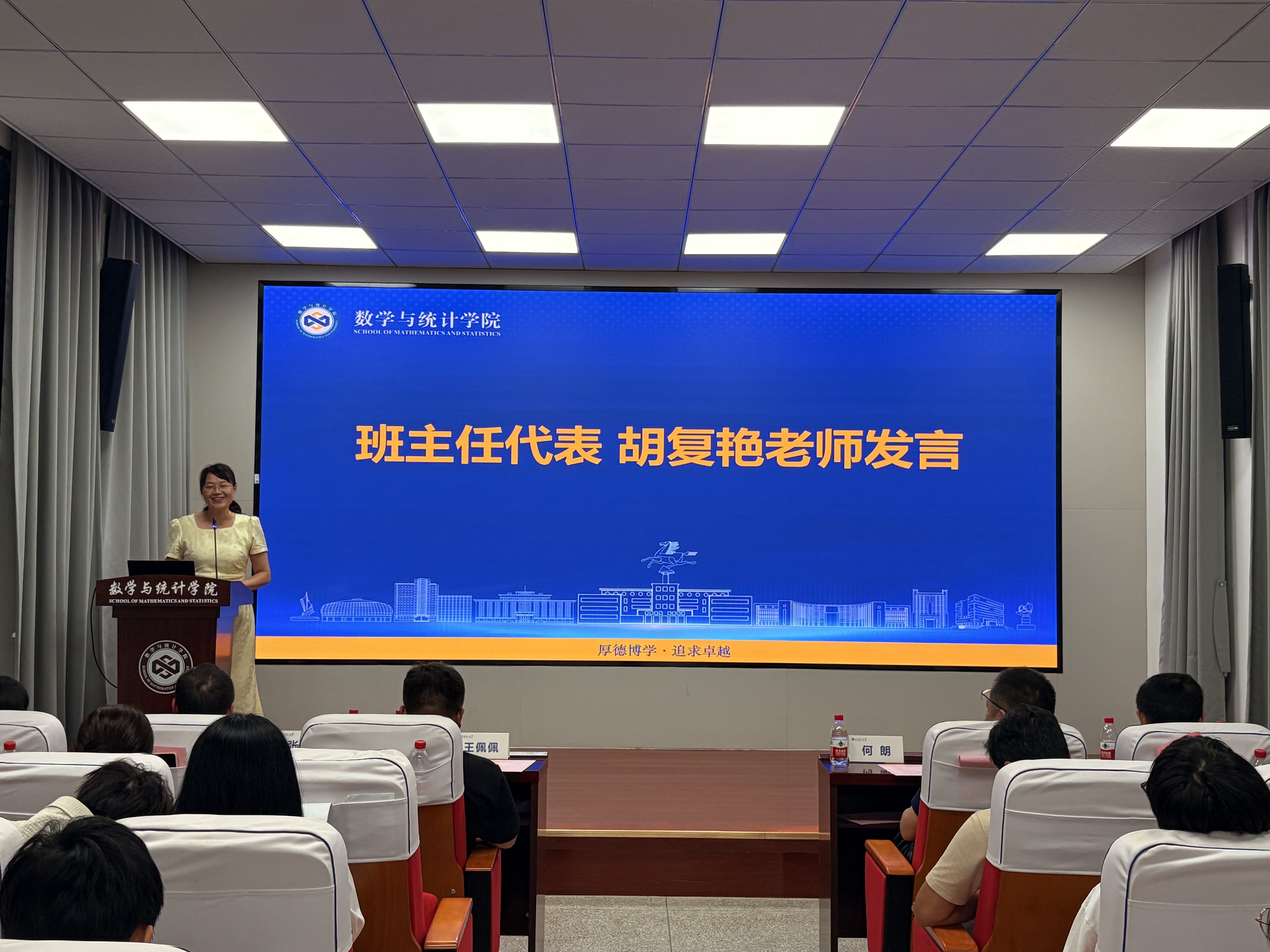 班主任代表胡复艳老师在发言中指出大学阶段是同学们新的成长阶段,期望同学们在学习中筑牢数理根基,注重实践应用,学会独立生活与团队合作,发扬“厚德博学、追求卓越”的理工精神。
