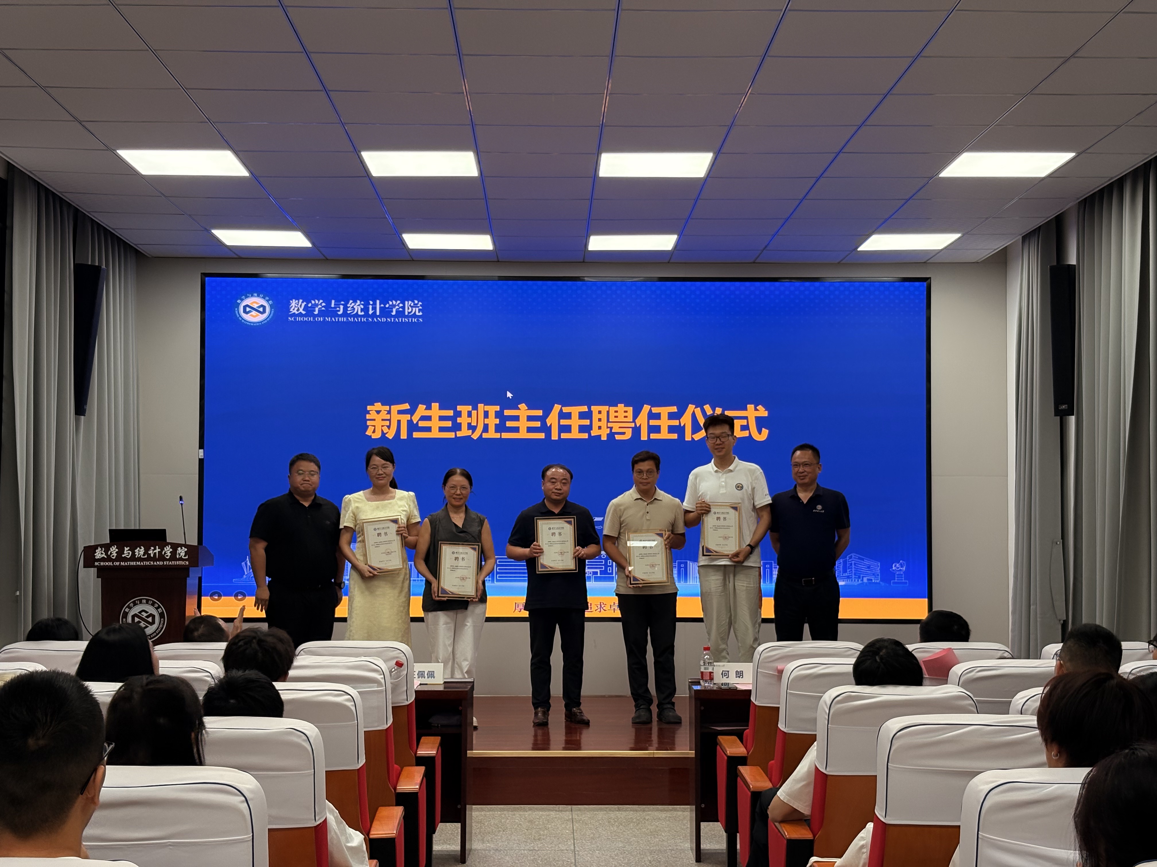 何朗院长、王佩佩书记为新生班主任颁发聘书,希望新生班主任与学院一起努力,为学生成长保驾护航。