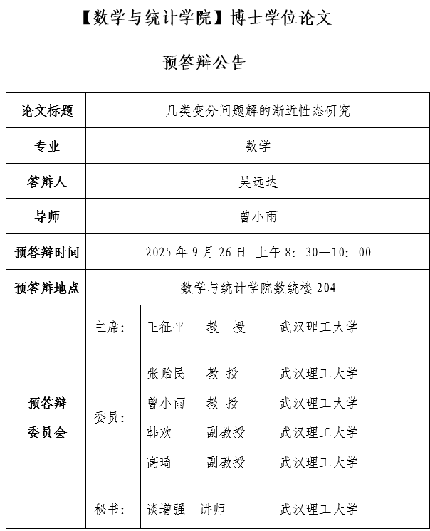 【raybet雷竞技网站】博士学位论文预答辩公告(吴远达)