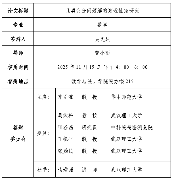 【raybet雷竞技网站】博士学位论文答辩公告(吴远达)